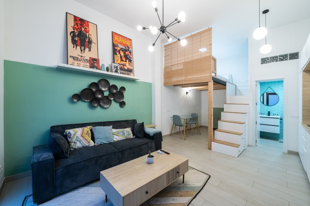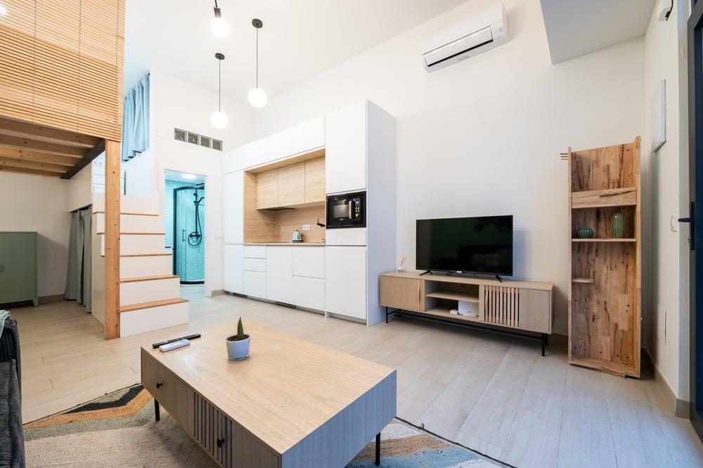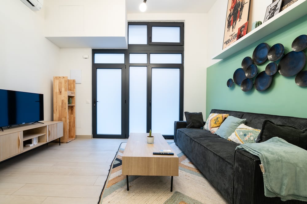 Welcome to my studio with private entrance from the street. Enter directly from the street into a stylish open-plan living space with a sofa and smart TV. The minimalist decor and pendant lighting create a warm ambiance. The kitchen, fully equipped with a stovetop, coffee maker, and toaster, allows for easy meal preparation. The property has a glass dining table for two, ideal for intimate dining experiences, and the washer ensures laundry convenience during your stay. Ascend a few steps to the loft bedroom, where a double bed and storage cabinets offer a cozy retreat. The separate modern bathroom, featuring a shower and elegant hexagonal tiles, provides a refreshing space to start your day. Please note that natural light enters through uncovered windows, but the bedroom area has a small curtain. Note: This apartment is for temporary rental – Not available for tourism purposes. To complete the reservation, it is essential to sign a seasonal lease agreement and provide proof of the reason for the stay. After completing the reservation, you will receive a contract to sign; without the signed contract, the reservation will be canceled without the right to a refund. Enjoy your stay!