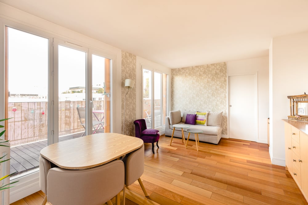 Bienvenue chez moi ! Vous pourrez vous détendre et prendre vos repas sur notre terrasse de 20m2 et apprécier la vue dégagée ( 8e étage avec deux ascenseurs, non recommandé aux enfants).Cet appartement est conçu pour deux adultes. Cet appartement peut accueillir jusqu'à 2 personnes. Doté d'un canapé confortable, détendez-vous dans le salon après une journée bien remplie à explorer la ville. La cuisine attenante est entièrement équipée d'ustensiles de cuisine et de couverts dont vous aurez besoin pour préparer un délicieux repas. La chambre contient un grand lit avec des draps de qualité hôtelière et de nombreux espaces de rangement. La salle de bains est équipée de toutes les commodités dont vous aurez besoin pour vous rafraîchir, comme une douche, des toilettes et un lavabo. L'appartement est toujours nettoyé par des professionnels pour votre santé et votre sécurité. Profitez de votre séjour !