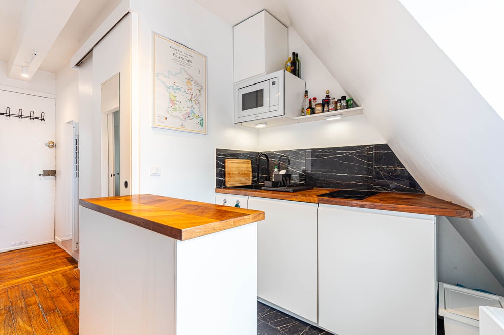 Découvrez cet appartement charmant situé au 6ème étage sans ascenseur dans le quartier animé du 18ème arrondissement. Idéal les voyageurs solitaires ou en couple. Il offre une vue exceptionnelle sur Paris. Profitez de sa proximité avec des sites emblématiques comme la Basilique du Sacré-Cœur et le Mur des Je t'aime. De plus la station de métro Place de Clichy, est située à seulement quelques pas.