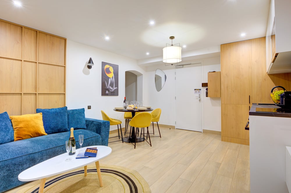 Bienvenue chez TheBlueStay ! Découvrez cet appartement d'exception de 60m² avec climatisation situé dans le prestigieux 17ème arrondissement de Paris dans un quartier recherché de Paris, à proximité des Champs-Élysées. Conçu pour accueillir jusqu'à 6 personnes, ce logement élégant et moderne est parfait pour un séjour entre amis ou en famille pour visiter la capitale.