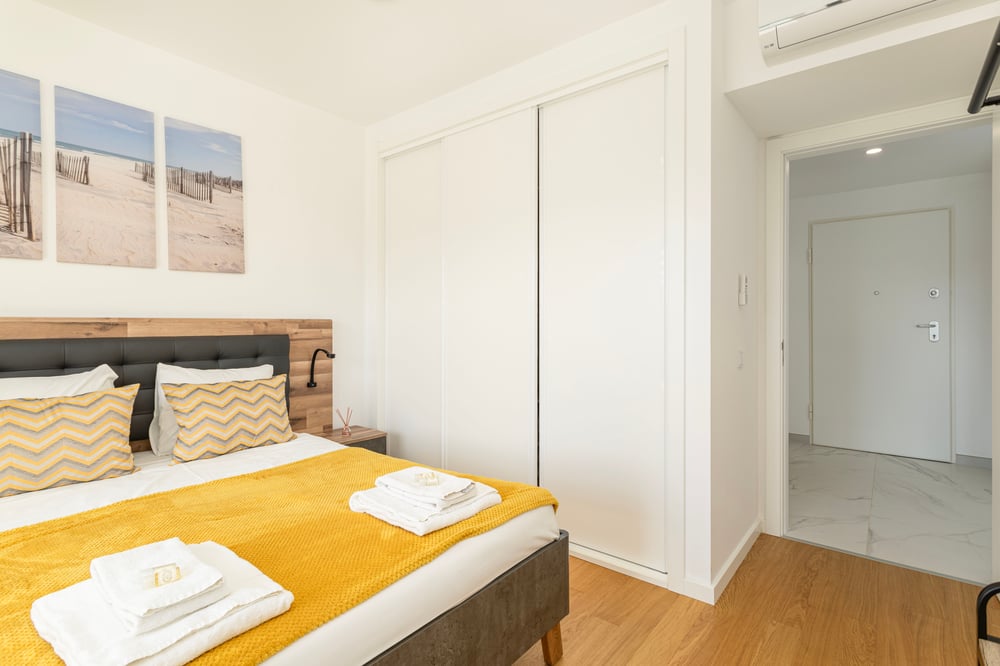 It's part of a private condominium with contemporary design with pool, garden, playground and garage. Large and spacious areas where comfort and light predominate. It has a living room and open space kitchen that extends to a large outdoor balcony with barbecue,one bedroom with an outdoor balcony, fully equipped kitchen and parking outside or in the basement. In the bedroom and living room we have electric shutters, reversible air conditioning, double glazing and high security doors. It benefits from an excellent location, close to all services, and within walking distance of the beach. Ideal place for an exquisite and extremely comfortable holiday. Please note to respect the noise volume after 22h00 in the apartament. The well-being you deserve!