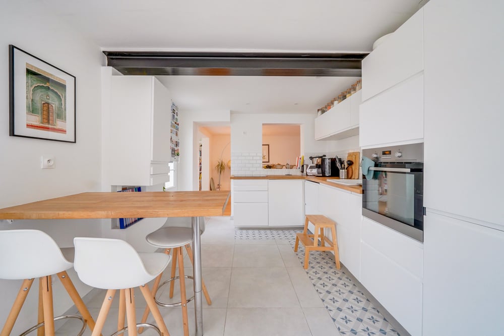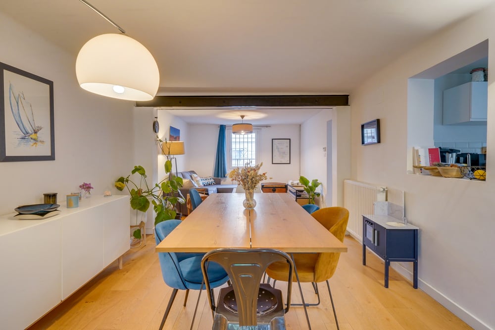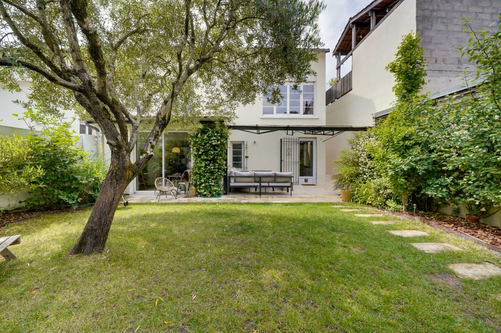 The house - 1 large living room with dining area and views over the garden - 1 semi-open, fully equipped kitchen, - 3 bedrooms upstairs (1 Queen bed, 1 double bed, 1 Single bed) - 1 bathroom with shower and bath - 3 bathrooms - 1 outbuilding with 1 bedroom (double bed) and en-suite shower room Free parking in the neighbourhood THE KITCHEN The kitchen includes a dishwasher, hob, fridge, oven, microwave, toaster, kettle and coffee machine. THE FACILITIES All the facilities are provided: wifi, washing machine, tumble dryer, coffee, sponges, bin liners, hotel-quality sheets and towels. Professional cleaning before and after each booking.
