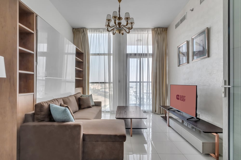 Welcome! This lovely 65 sq m apartment is located on the 9th floor, accessible by elevator. The living room is comfortably furnished with a sitting area, a TV for enjoying your favourite shows, and a dining table, making it an ideal space to unwind and spend quality time with your group. The kitchen includes appliances as well as essential cookware and crockery that will fulfil any of your culinary requirements. A washer is available for your laundry needs. The bedroom features a comfortable queen-size bed with hotel-quality linens, ensuring a restful night's sleep, and multiple storage spaces. The area features floor-to-ceiling windows that open onto a furnished balcony, perfect for relaxing. For additional guests, there's a double bed and a sofa bed in the living room. The bathrooms have all the amenities you will need to freshen up, including fresh towels and toiletries for your convenience. The apartment is always professionally cleaned for your comfort. Daily housekeeping services are available upon request for an additional fee. Please note that Dubai is a vibrant and ever-growing city, and with these developments come occasional construction in apartment buildings or the surrounding area. While this may bring some urban sounds or affect the views from the property, it is all part of the city’s dynamic growth. We truly appreciate your understanding and look forward to hosting you. Enjoy your stay!