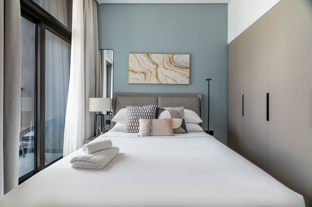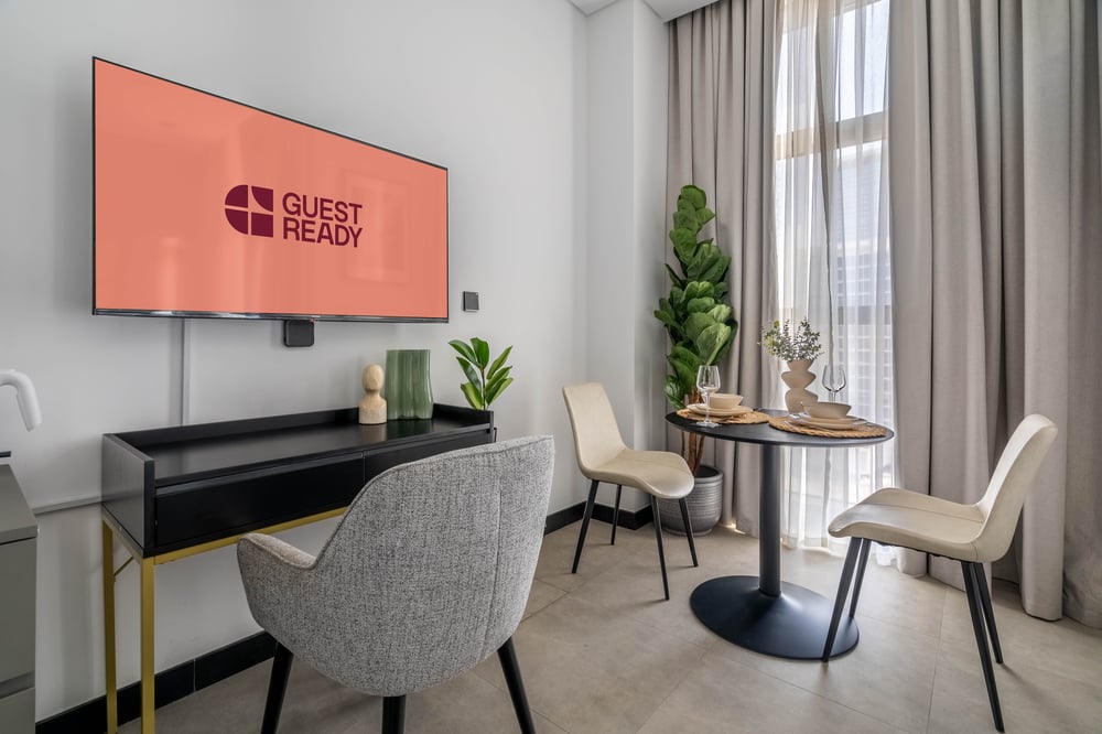 Benvenuti nel mio studio! Arredato con gusto, questo grazioso monolocale di 33 m2 si trova vicino a diverse attrazioni, come il Dubai Mall e il Burj Khalifa. Si trova al 14° piano e dispone di ascensore. Questo monolocale è progettato con aree aperte per il soggiorno, la sala da pranzo e la cucina. La zona giorno è dotata di un comodo divano e di un letto matrimoniale con lenzuola di qualità alberghiera in omaggio per il massimo comfort. È inoltre possibile accedere al balcone privato con aree per sedersi e godersi la vista. La cucina è completamente attrezzata con le pentole e le posate necessarie per cucinare pasti deliziosi, tra cui un fornello e un forno. C'è anche una zona pranzo dove potrete cenare con i vostri cari. Il bagno contiene tutto l'essenziale per la vostra comodità, compresi asciugamani puliti e articoli da toilette in omaggio. Il monolocale viene sempre pulito professionalmente per il vostro comfort. Il servizio di pulizia giornaliero è disponibile su richiesta a un costo aggiuntivo. Vi preghiamo di tenere presente che Dubai è una città dinamica e in rapida espansione, e che durante il vostro soggiorno potreste imbattervi in occasionali rumori urbani, come quelli associati alla crescita in corso. Vi ringraziamo per la vostra comprensione. Buon soggiorno!
