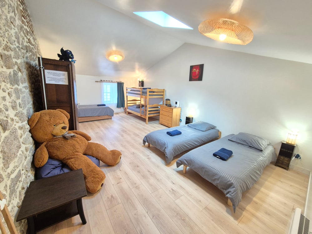 -> Accommodation located in the commune of Sèvremont. -> Capacity up to 9 guests. It consists of: *** On the ground floor *** -> A large dining area and a fully fitted and equipped kitchen (hob, extractor hood, microwave, oven, fridge, dishwasher, toaster, filter coffee maker, kettle…). All the essentials for cooking are at your disposal. A welcome kit is provided, including tea, coffee, sugar, and biscuits. -> A high chair for babies is available in the kitchen. -> A living room with a sofa, two poufs, a coffee table, and a TV! WIFI available. -> A laundry room with a washing machine, cleaning supplies, a toilet, and a sink. *** On the 1st floor *** -> A bathroom with a shower, a sink, a mirror, and a hairdryer. A bathroom kit is offered with soap, shower gel, and shampoo. -> A separate toilet. -> A bedroom with a Queen-size bed (160x200 cm). You will also find a desk and a wardrobe in this room. -> A second bedroom with a Double bed (140x200 cm). In this room, you will also have a bathtub and a sink. A wardrobe and a baby bed are also available here. *** On the 2nd floor *** -> A third bedroom for children with 5 single beds (80x200 cm), including one bunk bed. This spacious room has a chest of drawers as well as children’s books and games. *** Outside *** -> A private, secluded outdoor area with garden furniture and a lawn space to enjoy and have fun! -> A charcoal barbecue (charcoal not provided). *** ALL bed linen and bath towels are included in the price — no extra charges! *** -> Free parking spaces on the street in front of the house. *** A key box is available, allowing you to arrive independently. *** -> Check-in from 5 pm, check-out by 10 am. -> Pets are not allowed. -> Please note, the house has a staircase to access the bedrooms. A child safety gate is available on each floor. -> A security deposit will be requested a few days before your arrival, depending on the booking platform. This mandatory step ensures the proper running of your stay.
