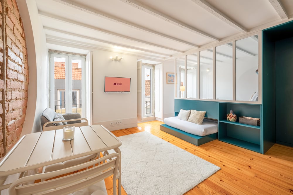 Welcome to my studio! This charming 26 m² studio in Lisbon is the ideal retreat for guests seeking comfort, convenience, and a memorable stay. The open-plan living area features a versatile bed, for an extra guest, that converts into a sofa, a TV for all your favourite shows, and a dining table perfect for enjoying meals or working remotely. A charming Juliet balcony adds a touch of elegance and allows fresh air and natural light to flow into the space. The adjacent sleeping area features a plush double bed dressed in premium hotel-quality linens, ensuring restful nights. You’ll also find ample storage for your belongings, making longer stays more comfortable. Although there's no wall or door dividing them, the two sleeping areas are partially separated by the placement of furniture, offering a sense of privacy and added comfort. The fully equipped kitchen comes with everything you need to prepare home-cooked meals, including a stove, oven, microwave, and all essential cookware and cutlery. A dishwasher is also provided for easy cleanup. The bathroom contains all the necessary amenities, including clean towels and complimentary toiletries. For your comfort and peace of mind, the studio is professionally cleaned before each arrival. BE AWARE THAT THE STUDIO IS LOCATED ON THE THIRD FLOOR WITHOUT AN ELEVATOR. Enjoy your stay! NOTE: This is a traditional building in the heart of Lisbon. As with many historic buildings in the city centre, there may occasionally be some ambient noise.