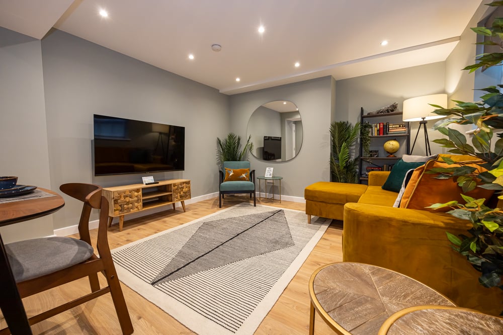 Benvenuti nel mio appartamento! Questo affascinante appartamento con 2 camere da letto a Liverpool è la scelta perfetta per gli ospiti in cerca di una sistemazione confortevole. Si trova al piano -2 ed è accessibile tramite scale. La proprietà è ben arredata e presenta un design open space, creando un'atmosfera calda e invitante per tutti. Il soggiorno dispone di un divano letto convertibile, di una poltrona, di una smart TV a schermo panoramico per guardare tutti i vostri programmi preferiti e di un tavolo da pranzo per quattro persone. La cucina è completamente attrezzata con le pentole e le posate necessarie per cucinare pasti deliziosi, come fornelli, forno e microonde. Per il bucato sono disponibili anche una lavatrice, uno stendino e un'attrezzatura per stirare. Inoltre, è disponibile una lavastoviglie che vi consentirà di pulire comodamente dopo aver preparato un pasto delizioso. L'appartamento dispone di una camera da letto principale con letto king-size e di una seconda camera da letto con letto matrimoniale, tutte dotate di biancheria di qualità alberghiera per il massimo comfort. Ogni camera da letto dispone anche di una TV e di uno spazio per riporre i vostri effetti personali. Tutti i televisori dell'appartamento trasmettono solo canali Smart TV. I televisori non sono collegati a canali televisivi via etere. Tutti i televisori sono dotati di canali Samsung Plus basati su internet, mentre gli ospiti possono accedere ai propri account per altri canali forniti sul televisore (Netflix / Disney Plus / Amazon Prime, ecc.). Il bagno è dotato di tutti i servizi necessari, tra cui asciugamani puliti, asciugacapelli e articoli da toilette in omaggio. L'appartamento viene sempre pulito professionalmente per il vostro comfort. Godetevi il vostro soggiorno!