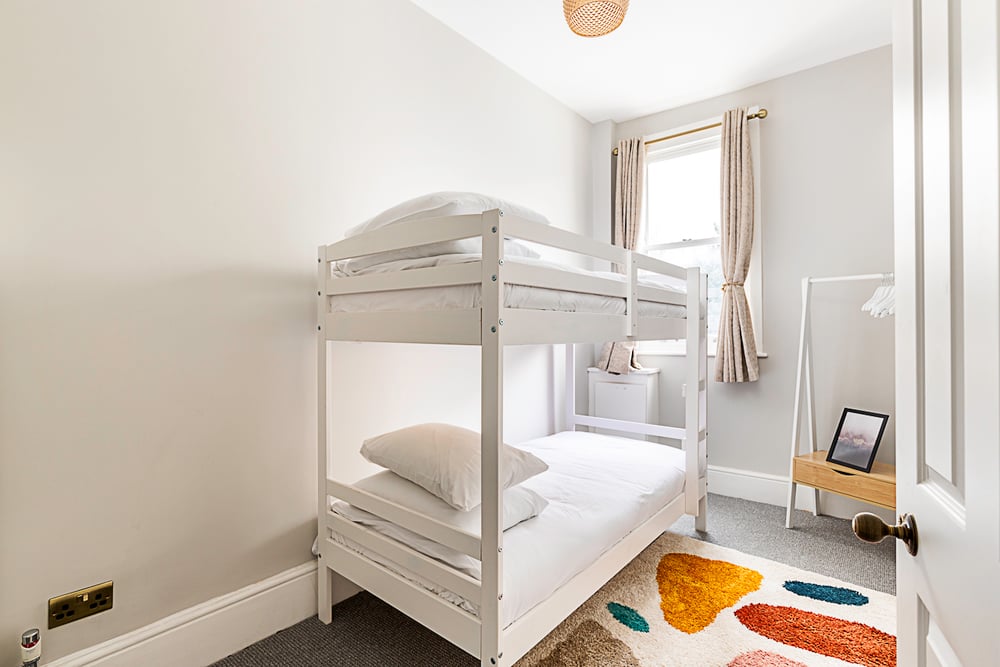 Nestled in the heart of a vibrant neighbourhood, with two cosy bedrooms furnished with a double bed and bunk beds this flat comfortably accommodates small families or groups of friends seeking a delightful stay in London