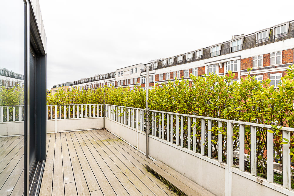 Design-led duplex with terrace, bright open-plan living and boutique style near Putney Bridge.