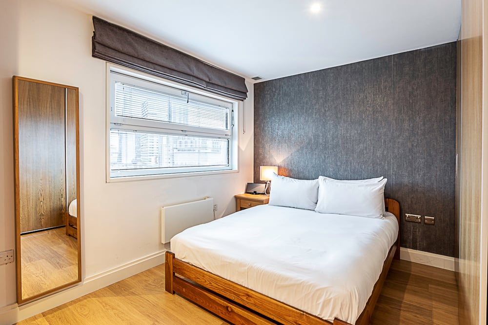 Located on the 12th floor, this beautiful Central London flat can comfortably accommodate up to four people. The smoke-free property features a living room, two bedrooms, two bathrooms, a kitchen, and a balcony. The living room is equipped with a comfortable sofa, a dining table and a Smart TV. The kitchen is fully equipped with modern appliances and includes all the cooking utensils that you could need when preparing a quick snack or your evening dinner. The bedrooms are equipped with double and queen size beds, with bathrooms equipped with a bathtub and a free-standing shower. To make the property feel like a home-away-from-home, we offer complimentary WiFi and our complimentary range of luxury amenities: - Fresh, high-quality linen and towels - Eco-friendly luxury toiletries