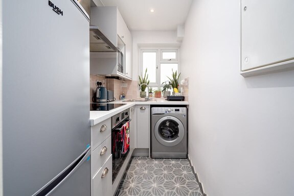 Stay in this stylish and vibrant studio flat that perfectly blends comfort with personality. Located on the second floor, this modern retreat is ideal for solo travellers or couples looking to explore the lively energy of Brixton Hill while enjoying a cosy and well-equipped space. With its modern eclectic décor and vibrant accents, it promises both relaxation and inspiration. The flat features an open-plan layout, including a comfortable double-sized bed that’s perfect for a restful night's sleep. There’s a sleek, modern bathroom with a shower and bath combination, ensuring you have everything you need to unwind after a busy day. The living area is inviting, with a plush coral sofa and a chic design that makes it easy to relax while watching the wall-mounted TV. The dining area sits nearby, perfect for enjoying meals or working remotely. The kitchen is equipped with modern appliances, offering all the conveniences you need to prepare your favourite meals. Pops of greenery and carefully curated artwork add a homely and creative touch to the space. Brixton Hill is one of London’s most dynamic areas, blending a vibrant cultural scene with a welcoming community feel. Just a short distance away is Brixton, famous for its electric atmosphere, music venues, and a rich tapestry of history. Don’t miss Brixton Village and Market Row, brimming with independent shops, cafes, and global eateries. For food lovers, sample dishes from the acclaimed Franco Manca or head to The Blues Kitchen for Southern-style comfort food and live music. Pubs like The Duke of Edinburgh, with its spacious beer garden, are perfect for unwinding. Brixton Underground station is the nearest tube station, conveniently connecting you to the Victoria Line for quick access to central London and beyond. Brixton also benefits from excellent bus links and National Rail services, making it easy to explore the city or venture further afield. Whether you’re here for the buzzing nightlife, the iconic music venues, or the eclectic culinary scene, this flat is a perfect base for your London adventures.