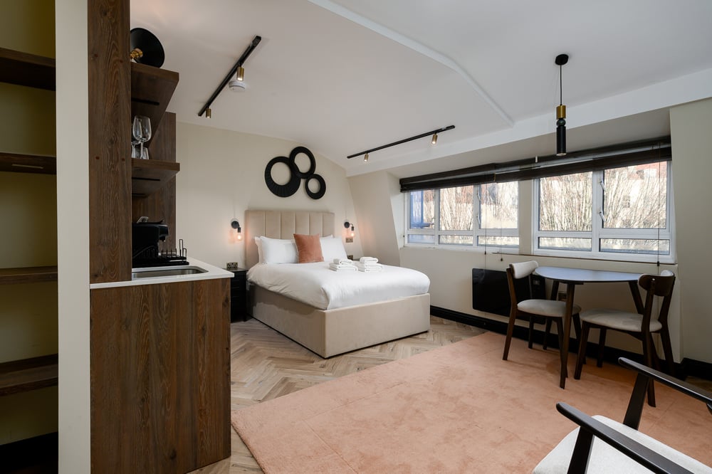 This stunning studio in London is centrally located, just a short walk from Euston train station, offering easy access to transport links across the city and other locations. The elegantly designed studio offers all the amenities you need for a comfortable stay. With its prime location, you'll have easy access to all the attractions, restaurants, and shopping London offers.