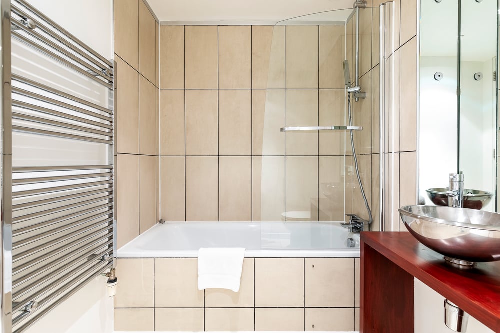 This stylish and modern flat is perfect for a small group or family looking to explore the vibrant heart of central East London, the dynamic culture of Shoreditch but also central London which is in easy reach within minutes. With two spacious bedrooms, two bathrooms, and a lovely terrace, it offers comfort and convenience in a prime location. Ideal for up to four guests, this flat combines contemporary living with practical amenities for a truly enjoyable stay. The flat features two comfortable bedrooms, including one with a king-sized bed and the other with a super king-sized bed, ensuring a restful night’s sleep. The two bathrooms include a walk-in shower in one, and the other is fitted with a bath and a wall-mounted shower. The property also includes a welcoming living area with two sofas, where you can relax after a busy day of exploring. The dining area provides ample space for meals together, and the fully equipped kitchen comes with modern appliances such as a toaster, kettle, Nespresso machine, and a state-of-the-art Miele dishwasher — perfect for easy clean-up after cooking and dining in. The private terrace offers a tranquil spot to unwind, with views of the surrounding area. Located on the first floor, the flat is easily accessible and provides a peaceful retreat within the city.