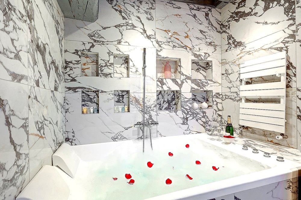 Enjoy a unique stay in this spacious apartment, combining comfort and elegance in the heart of Paris. The bright and welcoming living room has a double sofa bed, a TV, and a dining table, perfect for sharing meals or relaxing after a day of sightseeing. The modern marble kitchen is fully equipped with a stovetop, microwave, and Nespresso machine, and provides coffee, tea, and sugar for your gourmet breaks. The master bedroom offers a double bed and a TV for peaceful nights. The second bedroom has a double bed, a private bathroom, and a toilet, while the third bedroom offers a double bed, a private jacuzzi, and an en-suite toilet. Two modern bathrooms with showers, hairdryers, and complimentary toiletries are at your disposal, as well as three toilets for added convenience. Amenities include a jacuzzi, washer/dryer, dishwasher, high-speed Wi-Fi, linens, and towels. The apartment is located on the 3rd floor of a secure building without an elevator.