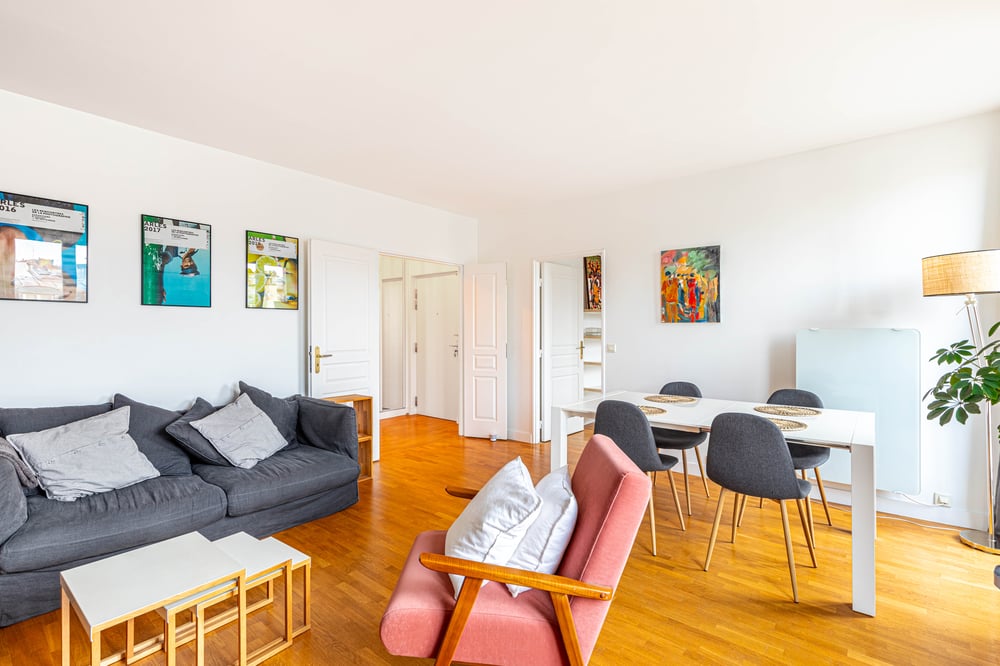 Benvenuti nel mio appartamento! Luminoso e arredato con gusto, questo grazioso appartamento di 67 m² si trova al 5° piano, accessibile con un ascensore! L'appartamento è progettato con una pianta aperta. Il soggiorno è dotato di un grande divano, una smart TV a schermo panoramico per guardare tutti i vostri programmi preferiti e un tavolo da pranzo per quattro persone. C'è anche un balcone privato per godersi l'aria fresca e la vista. La cucina è completamente attrezzata con pentole e posate essenziali per cucinare pasti deliziosi, come una piastra di cottura, un forno e un microonde. L'appartamento dispone anche di lavatrice e ferro da stiro per le vostre esigenze di bucato. La camera da letto principale ha un letto matrimoniale, mentre la seconda ha un comodo divano letto. Entrambi i letti sono forniti di lenzuola di qualità alberghiera per il massimo comfort. Il bagno è dotato di tutti i servizi necessari, tra cui asciugamani puliti e articoli da toilette in omaggio. L'appartamento viene sempre pulito professionalmente per il vostro comfort. Godetevi il vostro soggiorno!