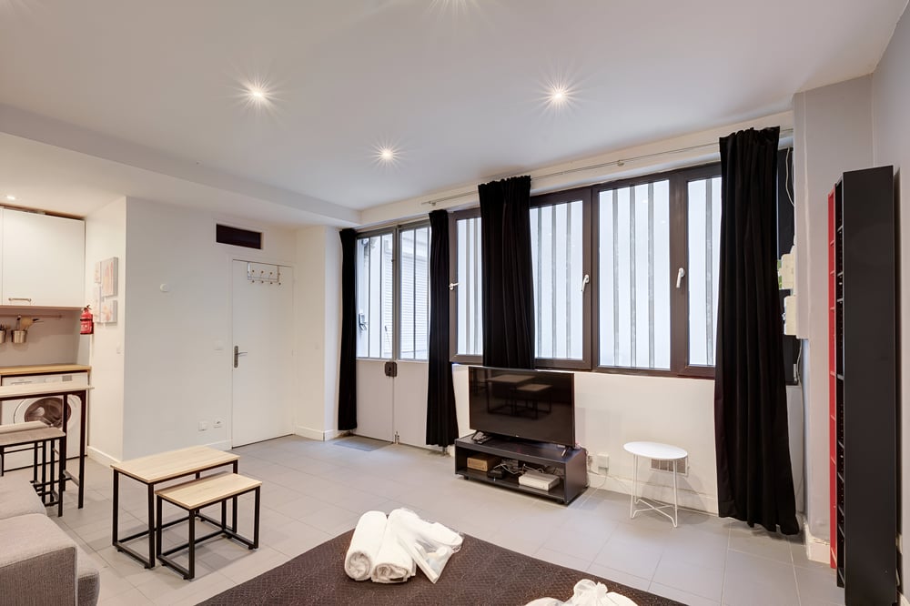 Please note that from November 3 to March 30, renovation work is planned inside the building. The apartment, located on the ground floor, remains easily accessible and any inconvenience will be limited. Enjoy a pleasant stay in this well-appointed apartment equipped for your comfort: Main room: A cosy living room with a double sofa bed, a double bed, a TV and a dining table for convivial moments. Kitchen: Functional kitchenette with hob, microwave and Nespresso machine. Coffee capsules, sugar and tea are also available to enhance your gourmet moments. Bathroom: A modern bathroom with shower, welcome kit including shower gel and shampoo, and hairdryer. Toilet: A WC in the bathroom for added convenience. Additional amenities: Washing machine, iron, Wi-Fi included, sheets and towels provided for each guest. Everything has been thought of to make you feel at home. Additional information: The apartment is located on the ground floor, in a courtyard at the back of a secure building.