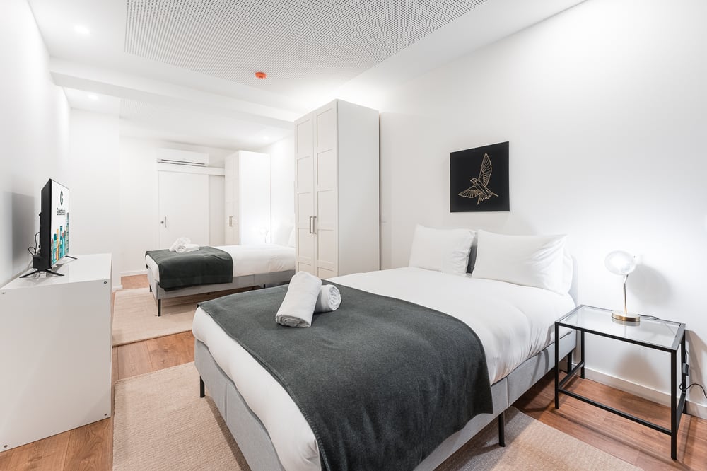 Benvenuti a casa mia! Questa suite è una camera spaziosa e calda con due letti matrimoniali. È dotata di molta luce naturale e molto confortevole, il che la rende un luogo ideale per rilassarsi. Dispone di un armadio per riporre le vostre cose, di una TV a schermo piatto per intrattenervi e di un bollitore. Tutti i letti sono dotati di biancheria di qualità alberghiera per garantire un buon riposo notturno. La camera è dotata di un servizio di pulizia giornaliero che vi garantirà un ambiente rinnovato ogni giorno del vostro soggiorno. Inoltre, avrete a disposizione un bagno privato, comodamente situato all'interno della camera. È dotato di tutti i servizi necessari per rinfrescarsi, compresi asciugamani e articoli da toilette freschi per la vostra comodità. Avrete accesso a un'area comune/condivisa dove troverete un frigorifero e un tostapane. Nella zona giorno comune troverete un divano e una TV a schermo piatto. L'appartamento viene sempre pulito e igienizzato professionalmente per la vostra salute e sicurezza. Godetevi il vostro soggiorno