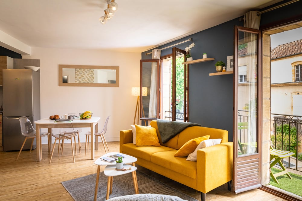 The "Sarladais" is a flat just renovated with taste, combining modernity and comfort. It is very luminous thanks to its large bay windows, giving onto a balcony and its exceptional view on the pedestrian and tourist Avenue de la République. You will have all the necessary comforts for a successful stay: private parking, wifi, top-of-the-range bedding, fully equipped kitchen with dishwasher, washing machine... Its main assets: right in the centre of Sarlat, private parking, bright and with a balcony. Bed linen and towels included, just like in a hotel. You will only have to enjoy a memorable stay for two.