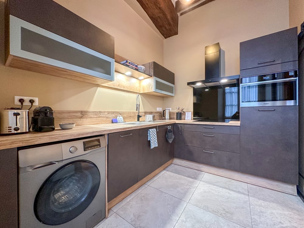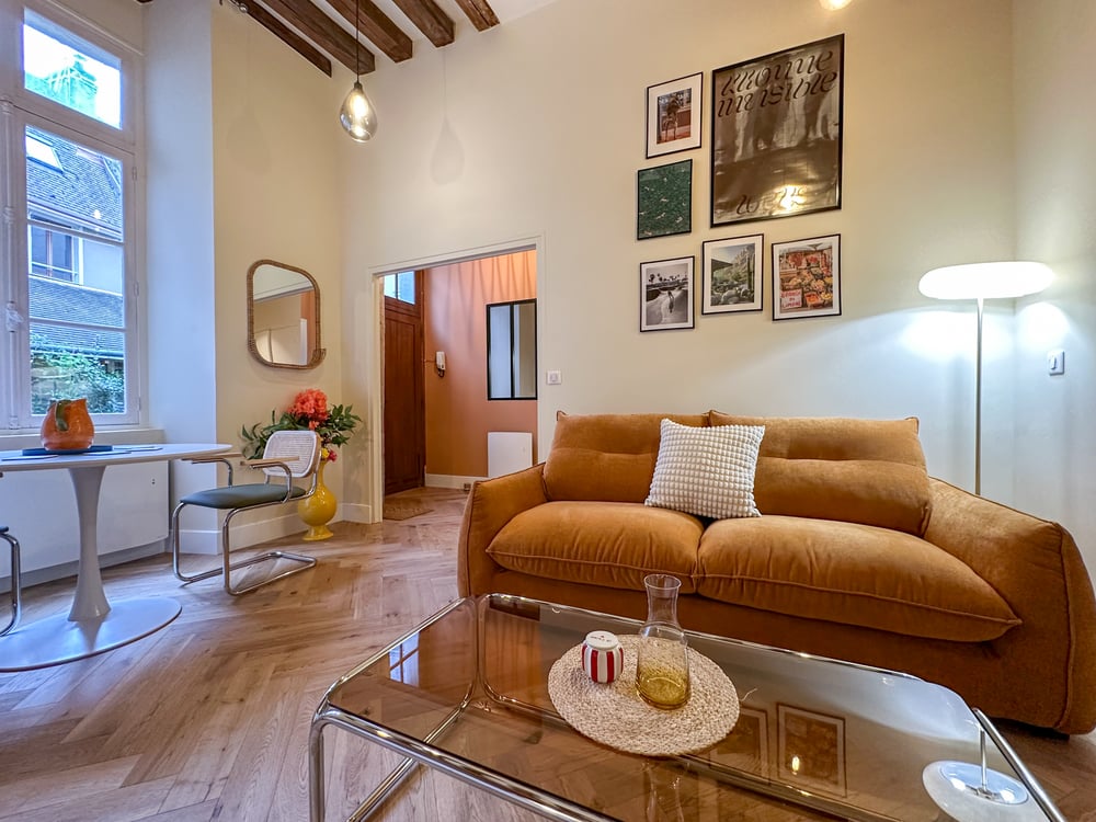Welcome to L’Atelier Nova. Designed as a place of character, this 47m² apartment subtly blends authenticity with modern comfort. From the moment you step inside, the exposed beams and herringbone parquet floors create a warm, elegant atmosphere. The bright living room invites you to relax with comfortable seating, a convivial dining area, and tasteful decor mixing design and artistic touches. The separate modern kitchen is fully equipped (oven, hob, dishwasher, Nespresso machine, washing machine), making it easy to prepare meals. The bedroom offers a serene retreat with a high-quality Queen-size bed 🛏️. The contemporary bathroom, with its spacious Italian shower 🚿 and double sink, completes this cocoon designed for comfort and relaxation. More than just a place to stay, L’Atelier Nova is a refined getaway where authenticity meets elegance, the perfect base to enjoy Chartres in style. ✨