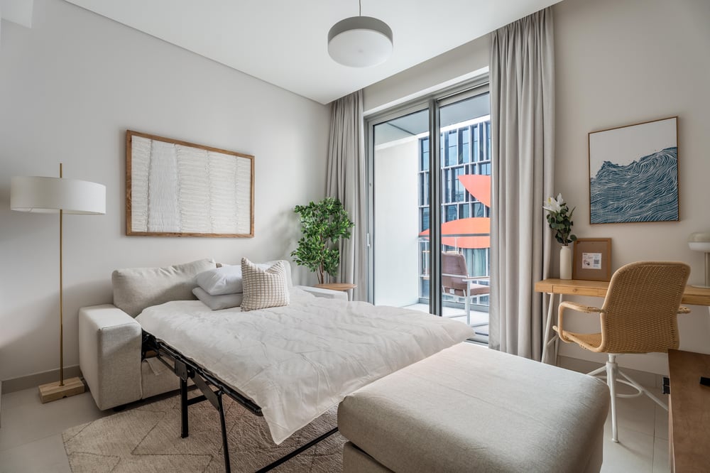 Welcome! This elegant open-plan apartment offers a stunning city view and a prime location right next to the Dubai Mall. Guests can conveniently reach the mall through the covered Chinatown connection, a comfortable and air-conditioned walkway, without having to walk in the heat. The living space seamlessly combines the kitchen, dining, and lounge areas, creating a warm and inviting atmosphere. The living room features chic décor, a comfortable sofa, a large smart TV, and expansive windows that flood the space with natural light. Sliding doors open to a private balcony, offering a peaceful spot to unwind and enjoy the outdoors. The modern kitchen is fully equipped with high-end appliances, while the dining area, set with a stylish table for four, provides the perfect setting for shared meals. A dedicated study table offers a convenient workspace for guests working or studying from home. The spacious bedroom boasts a luxurious king-size bed adorned with complimentary hotel-quality linens, ensuring a restful night’s sleep. Sliding doors open to a private balcony, offering a peaceful spot to unwind and enjoy the outdoors. The elegant ensuite bathroom includes premium fittings, fresh towels, and toiletries for your comfort and convenience. The apartment is always professionally cleaned for your comfort. Daily housekeeping services are available upon request for an additional fee. Please note, Dubai is a vibrant and ever-growing city, and with these developments come occasional construction in the apartment building or the surrounding area. While this may bring some urban sounds or affect the views from the property, it is all part of the city’s dynamic growth. We truly appreciate your understanding and look forward to hosting you. Enjoy your stay!