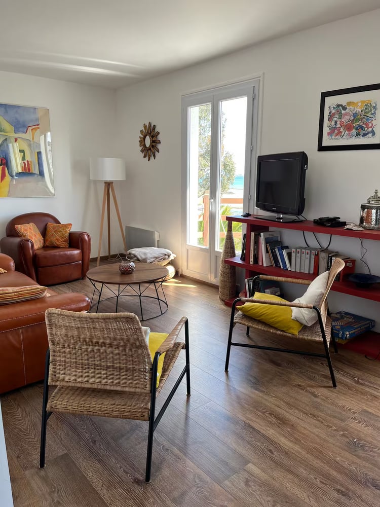 The Space This large two-story house combines comfort and functionality: Ground floor • A brand new fully equipped kitchen (2024) • A living/dining room with a fireplace • A second lounge with satellite TV, direct access to the terrace, and a workspace • A laundry room with washer, dryer, and large walk-in shower (ideal after beach trips) • Two separate entrances, each with its own staircase • Two separate toilets Upstairs • 3 spacious double bedrooms • 1 children’s bedroom with two single beds • 1 bathroom • 1 shower room • 2 additional toilets Outside • Large south-facing terrace with breathtaking sea view • Vast private wooded garden stretching along the coast with direct beach access • Private parking spaces • Charcoal BBQ (Weber)