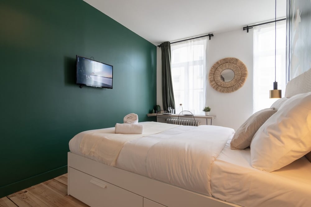 You'll love the comfort of this accommodation, with its fully-equipped kitchenette, double bed, stylish modern decor and bathroom with shower and toilet. Ideal for solo travellers, business travellers or couples for a short stay! The flat is located on Rue Baptiste Monnoyer on the 3rd floor (no lift) of a typical Lille building, and you will have access to the entire flat. The staircase to access the flat is typical of our pretty Lille buildings: the stairs are narrow, so we recommend that families with young children or people with mobility difficulties take this into consideration before booking. For information, renovation work is currently taking place in the building's common areas. This may cause some noise pollution, only during the day and excluding weekends. The flat will be carefully prepared for your arrival: Professional cleaning service + laundry for linen. All linen is provided: bed linen, bath towels, bath mats and tea towels. The kitchen is equipped with all utensils and dishes for lunch and dinner. Entertainment available via TV: Molotov TV, Prime Video! The neighbourhood is quite lively, so for light sleepers, we advise you to bring your earplugs !