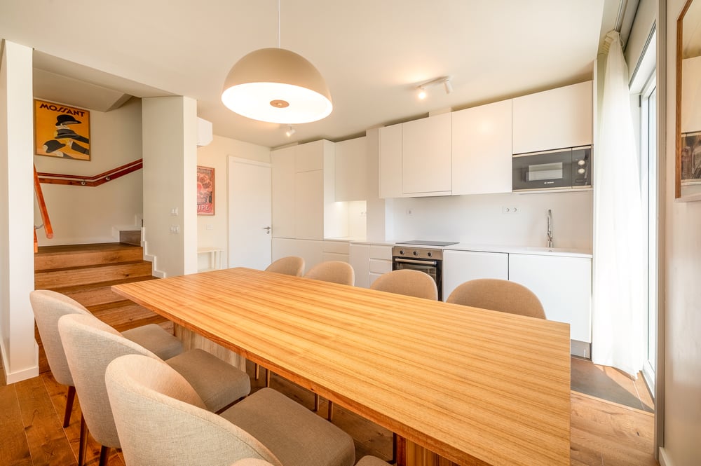 Welcome to my apartment! Bathed in natural light through its large windows, this charming and tastefully decorated 174m² three-bedroom duplex apartment in Lisbon is the perfect retreat for families and friends looking for a comfortable and relaxing vacation home. Situated on the 5th floor and accessible by lift, the space offers a warm and inviting atmosphere. The open-plan living area is thoughtfully designed, featuring a comfortable seating area, a flat-screen TV for your favourite shows, and a dining table ideal for enjoying meals together. The well-equipped kitchenette comes with everything you need to prepare delicious home-cooked dishes, including a stove, oven, microwave, and a full set of cookware and cutlery, ensuring a seamless cooking experience. Upstairs, you will find two bedrooms furnished with comfortable king-size beds and ample storage space, ensuring a restful stay. A third bedroom is fitted with three single beds, perfect for families or groups. Rest assured, all beds are outfitted with complimentary hotel-quality linens for maximum comfort. The apartment features two full bathrooms. One is ensuite to a king-size bedroom, offering added privacy and convenience. The second bathroom is shared but has the advantage of two entrances: one accessible from the hallway and the other with direct access from the bedroom with single beds, making it practical for both shared use and private access. Fresh towels and complimentary toiletries are provided for your convenience. The apartment is always professionally cleaned for your comfort. Please note that it is necessary to climb stairs to access the upper rooms, making the apartment unsuitable for people with reduced mobility. Enjoy your stay!