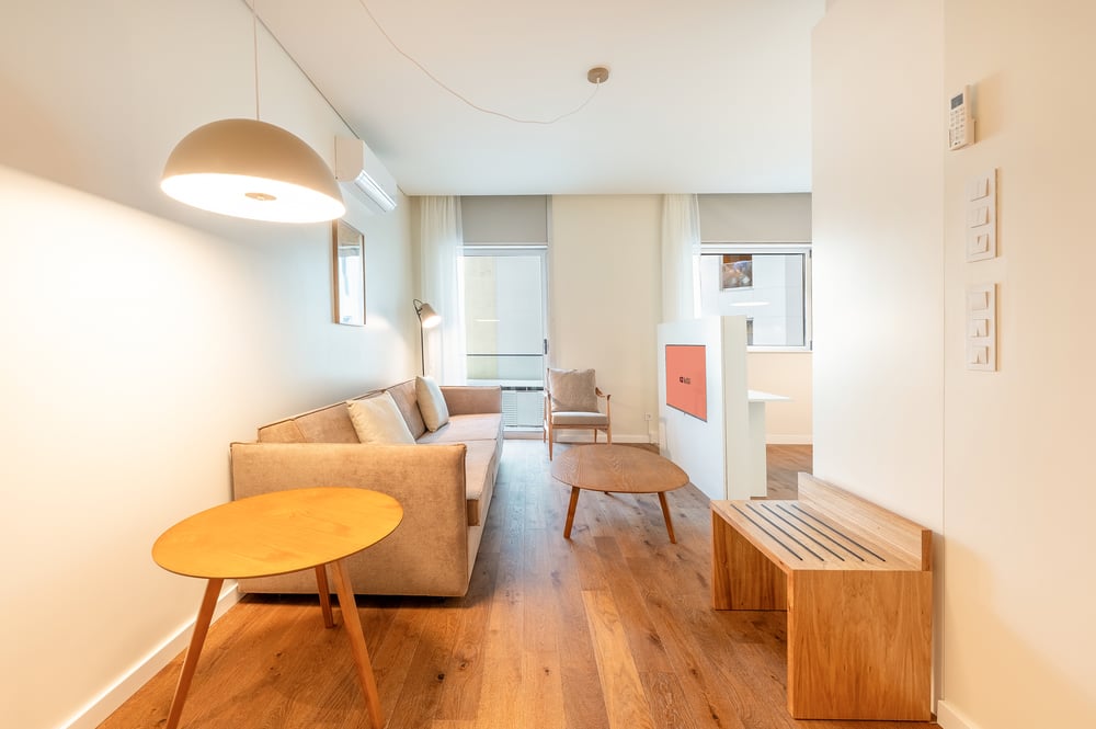 Welcome to my apartment! Bathed in natural light through its oversized windows, this charming and tastefully decorated 71m² one-bedroom apartment in Lisbon is the perfect retreat for couples looking for a comfortable and relaxing vacation home. Situated on the 7th floor and accessible by lift, the space offers a warm and inviting atmosphere. The open-plan living area is thoughtfully designed and features a comfortable seating area, a flat-screen TV for your favourite shows, and a dining table ideal for enjoying meals together. The well-equipped kitchenette has everything you need to prepare delicious home-cooked dishes, including a stove, oven, microwave, and complete cookware and cutlery, ensuring a seamless cooking experience. The bedroom offers a cosy king-size bed with hotel-quality linens and ample storage, making you feel right at home and ensuring a restful night’s sleep. The bathroom has all the essentials, including fresh towels and complimentary toiletries for your convenience. For your peace of mind, the apartment is professionally cleaned before each stay, ensuring a spotless and comfortable home away from home. Enjoy your stay!