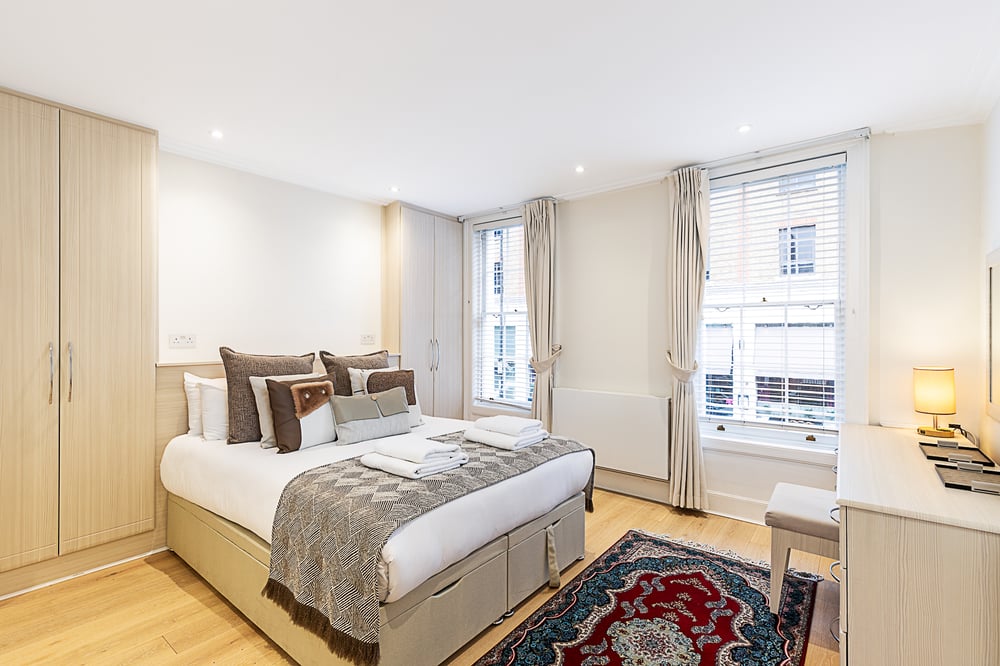 This elegant Central London townhouse offers the perfect blend of classic charm and contemporary comfort, set in the heart of Pimlico just a three-minute walk from Victoria Station and London’s most iconic landmarks. Spacious, stylish and thoughtfully designed, the home provides a refined yet welcoming base for families, friends or corporate guests seeking a prime London stay. The property comfortably accommodates up to six guests across three beautifully appointed bedrooms and two generous bathrooms, each featuring both a bath and a shower. The principal bedroom includes a king sized bed, while the additional bedrooms each offer double beds. The home is arranged across four floors, with the kitchen and dining area located on the lower ground level, and an internal staircase connecting each level. Inside, the décor beautifully blends period character with crisp contemporary finishes. The main living room is centred around a traditional fireplace, combining classic architectural detail with tasteful modern styling. Soft neutral tones, warm lighting and carefully layered textiles create a calm and cohesive atmosphere throughout. The sleek kitchen on the lower ground floor features white cabinetry, stone-style worktops and modern appliances including a dishwasher and combination washer dryer. The adjoining dining area provides a comfortable and intimate setting for shared meals. The bathrooms are finished in elegant marble-style detailing with minimalist fittings, offering a spa-like feel, while the bedrooms provide a serene retreat with plush bedding, built-in wardrobes and soft lighting. The overall aesthetic is that of a refined London townhouse; immaculate, sophisticated and designed for understated luxury. Disclaimer: Please note that the fireplace is decorative only and is not operational. For safety reasons, it is not available for guest use