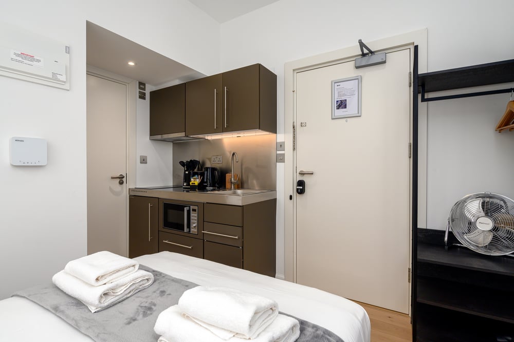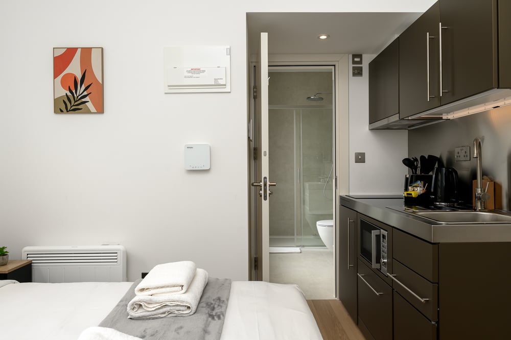 Welcome! Stay in the heart of historic Greenwich, one of London's most iconic and picturesque neighbourhoods. Our aparthotels are just a short walk from world-famous sights, including the Cutty Sark, the Royal Observatory, Greenwich Park, and the buzzing Greenwich Market. Surrounded by riverside pubs, cosy cafés, local shops, and excellent transport links, you'll have easy access to Central London while enjoying a village-like atmosphere. Our secure, well-maintained building houses 17 private self-catering studios, ideal for guests who value independence, comfort, and privacy. Designed for more extended stays, it's an excellent choice for students, digital nomads, and solo travellers looking for a peaceful and well-connected base. Each studio is bright, fully furnished, and completely self-contained. It features a comfortable bed, a modern en-suite bathroom, and a private kitchenette equipped with a fridge, hob, microwave, dishwasher, and essential cookware — everything you need to feel at home. High-speed Wi-Fi is included, which is ideal for remote work, study, or streaming. There is also a shared washer/dryer on the ground floor. Enjoy full flexibility with self-check-in via smart locks, allowing you to arrive anytime that suits you. While there's no daily cleaning or breakfast service, mid-stay cleaning can be arranged for an additional fee so you can enjoy your stay on your own terms. Have a pleasant stay!