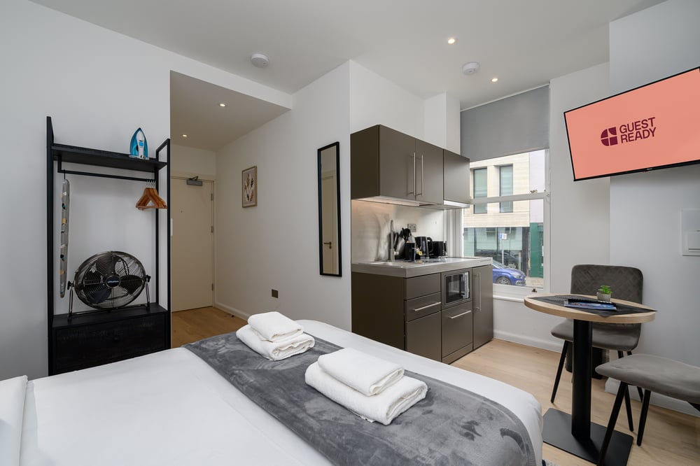 Welcome! Stay in the heart of historic Greenwich, one of London's most iconic and picturesque neighbourhoods. Our aparthotels are just a short walk from world-famous sights, including the Cutty Sark, the Royal Observatory, Greenwich Park, and the buzzing Greenwich Market. Surrounded by riverside pubs, cosy cafés, local shops, and excellent transport links, you'll have easy access to Central London while enjoying a village-like atmosphere. Our secure, well-maintained building houses 17 private self-catering studios, ideal for guests who value independence, comfort, and privacy. Designed for more extended stays, it's an excellent choice for students, digital nomads, and solo travellers looking for a peaceful and well-connected base. Each studio is bright, fully furnished, and completely self-contained. It features a comfortable bed, a modern en-suite bathroom, and a private kitchenette equipped with a fridge, hob, microwave, dishwasher, and essential cookware — everything you need to feel at home. High-speed Wi-Fi is included, which is ideal for remote work, study, or streaming. There is also a shared washer/dryer on the ground floor. Enjoy full flexibility with self-check-in via smart locks, allowing you to arrive anytime that suits you. While there's no daily cleaning or breakfast service, mid-stay cleaning can be arranged for an additional fee so you can enjoy your stay on your own terms. Have a pleasant stay!