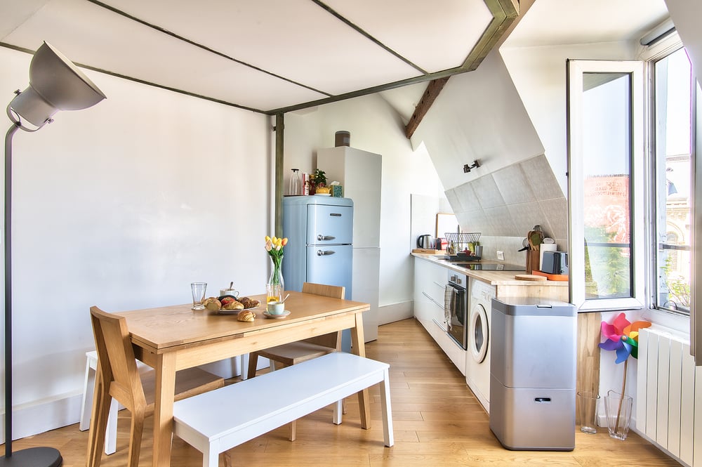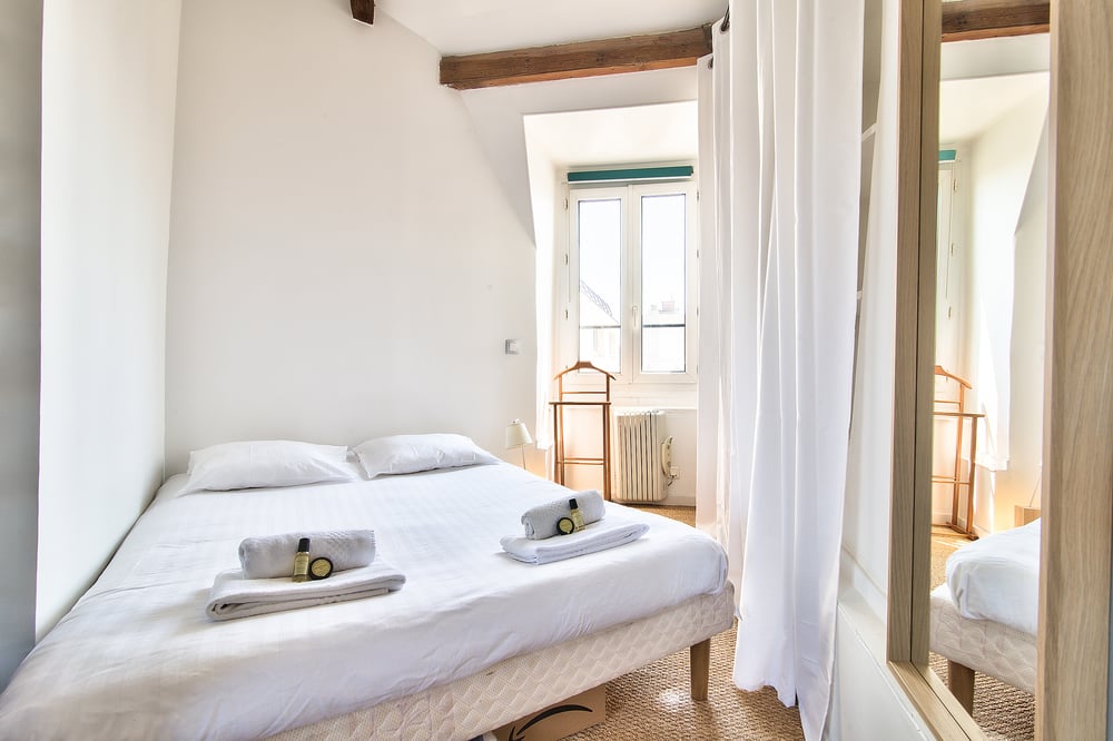Welcome to my home! Tastefully furnished with modern decors, this lovely flat is within walking distance to various top attractions in Paris! Relax in the bright living room full of books! The convertible double sofabed is very cosy for night sleep. The attached kitchen is fully equipped with appliances and cutleries you’ll need to whip up a delicious meal including a stove, an oven, and a fridge. If you fancy dining in, there's a dining area complete with a dining table and chairs for 4 people. The bedroom consist of a queen bed and a wardrobe for your belongings. Upon arrival, complimentary hotel-quality linens will be provided. The bathroom has all the amenities you’ll need to freshen up such as a walk-in shower, a toilet, and a sink. Fresh towels and free toiletries will also be supplied for your convenience. Enjoy your stay! NOTE: There is no elevator in this building.