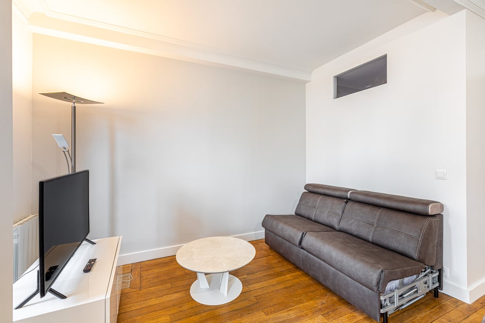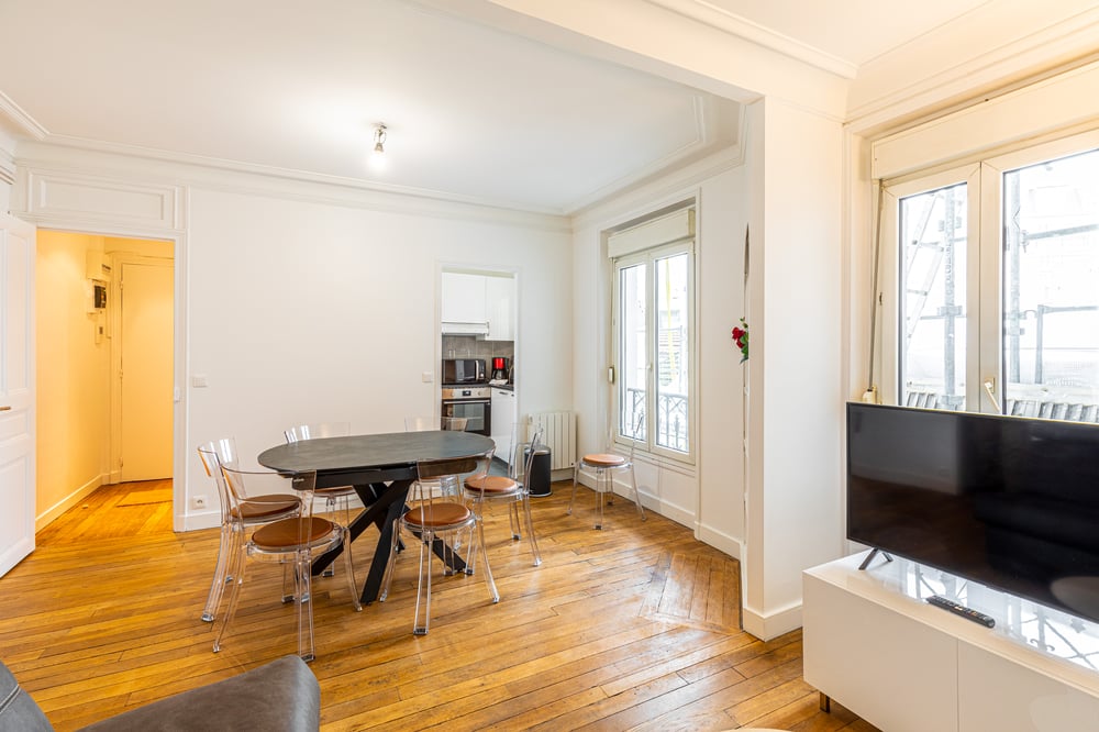 Welcome! Modern and tastefully decorated, this lovely apartment is close to various top attractions in Paris, such as the Père Lachaise Cemetery and many good restaurants scattered around the area. This apartment is designed with an open living room with a convertible sofa bed, a flat-screen TV and a six-person dining table where you can have a family dinner. The adjoining kitchen is fully equipped with essential cookware and cutleries that you will need to cook a delicious meal, such as an electric stove, an oven and a coffee maker. The bedroom contains a comfy double bed with hotel-quality linens and multiple storage spaces for your belongings. The bathroom has all the necessary amenities you will need, including clean towels and complimentary toiletries for your convenience. The apartment is always professionally cleaned and sanitized for your health and safety. Enjoy your stay!