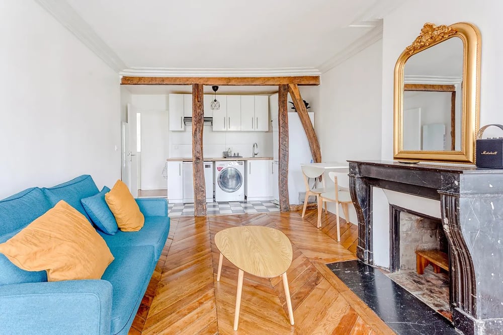 Welcome to my apartment! Situated on the 5th floor with a lift, this modern and tastefully decorated 48m² apartment is close to various top attractions in Paris, such as Atelier des Lumières and Musée National Picasso-Paris! This apartment is designed with an open floor plan. The living room features a comfortable sofa and a dining table for two. There's also a private balcony with seating areas to lounge and enjoy the stunning views. The kitchen is fully equipped with essential cookware and cutlery that you'll need during your stay, such as a stove, a kettle, a fridge, a microwave, a dishwasher, a toaster, and a coffee machine. The apartment also has a washer and ironing equipment for your laundry needs. The first bedroom has a double bed, and the other has a single bed. Both come with complimentary hotel-quality linens for maximum comfort. A portable AC is also available. The bathroom has all the necessary amenities, including a shower, towels, and complimentary toiletries. A hairdryer is also available. The apartment is always professionally cleaned for your comfort. Enjoy your stay!