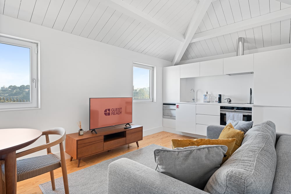 Welcome to my apartment! This delightful 60² property offers a welcoming and comfortable retreat, ideal for couples or friends looking to enjoy a memorable stay in the city. It is a luxury building with a shared pool and stunning views of the river and Gaia. Designed in a modern and elegant style, it offers guests a bright and peaceful atmosphere to relax and unwind. The living area features a cosy sitting space with a TV for relaxing evenings, a dining table, and a fully equipped open-plan kitchen, perfect for cooking and socialising. It includes all essentials such as an oven, cooking plate, microwave, coffee maker, and cookware to prepare delicious meals. The bedroom is tastefully decorated and offers a comfortable queen-size bed and ample storage space. The bathroom has all the essentials, including fresh towels, a hairdryer, and complimentary toiletries, ensuring a pleasant and comfortable stay. The building offers a beautiful outdoor terrace with a shared swimming pool, where guests can relax and enjoy the sunlight. The outdoor area is equipped with security cameras to ensure the safety of all guests. The property is always professionally cleaned for your comfort, and a daily housekeeping service is available. Daily breakfast service is included in the stay. Please note that access to the accommodation is by stairs. Enjoy your stay!