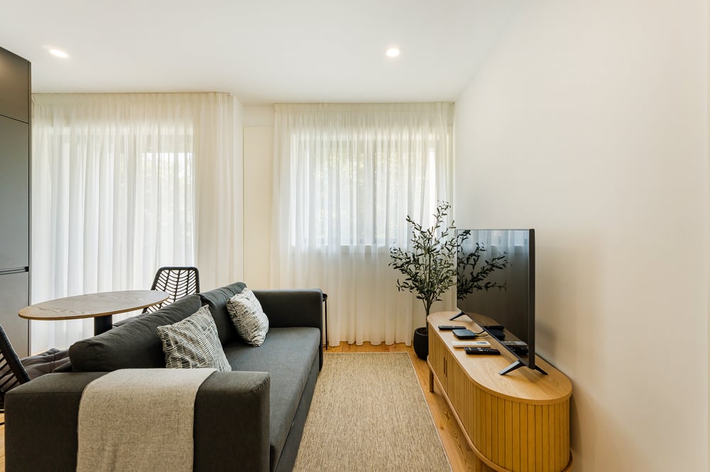 This is a self-check-in property, and you will be requested to verify your identity before enter into the property. Check-in can be done from 3 PM, pending availability and confirmation. Once a reservation is confirmed, guests are requested to complete a guest registration form following the legal obligations stipulated by local authorities in Portugal. There is a zero-tolerance policy for smoking on the property. If our team discovers evidence that this rule has been breached (e.g., smoke smell, ashes, butts, etc.), we fully reserve the right to charge a €200 smoking fee at minimum. Please note that for stays longer than 30 nights, a fair use policy of the utilities will apply with a limit of 80€. For the first days, we provide the basic amenities: samples of shower gel, shampoo, soap, toilet paper, kitchen roll, sponge, dishwashing products and bin bag. Extra keys: 20€ (extra pair of keys when available, lost keys or service to open the door during your stay). Extra cleaning with linen: the price of a cleaning fee. Extra Clothing: 30€ (Towels and sheets for 2pax, i.e. when the sofa bed is not included).