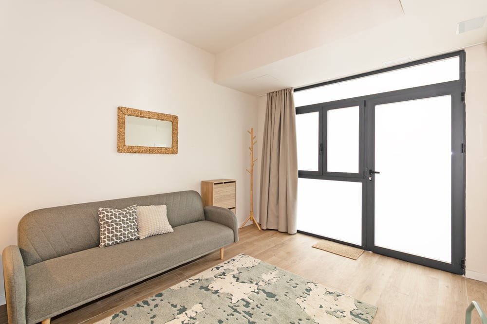 Welcome to my studio! This charming 30m² property is ideal for families, couples, or friends looking to enjoy a memorable stay in the city of Valencia. It is located on the ground floor of the building with street-level access and a private entrance. It is designed in a modern and minimalist style with large windows on the entrance side, providing a bright and welcoming atmosphere. The living room features a comfortable sitting area, including a single sofa bed and a smart TV. The open-concept kitchen includes essential cookware and cutlery to prepare delicious meals, as well as appliances such as an oven, stovetop, microwave, and coffee maker. Separated by wooden slats, the bedroom area includes a comfortable double bed with bed linen, multiple storage spaces, and a bathroom — equipped with all essentials, including fresh towels, a hairdryer, and complimentary toiletries to make your stay even more comfortable. The property is always professionally cleaned for your convenience. Enjoy your stay.
