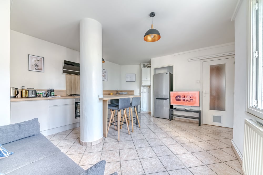 Enjoy a comfortable stay in this modern 2-bedroom apartment in the heart of Villeurbanne. Perfect for families or small groups, it features a bright living area, a fully equipped kitchen, and cosy bedrooms for a restful night. The apartment is close to local shops, cafés, and green spaces, with easy access to public transport for exploring Lyon and beyond.