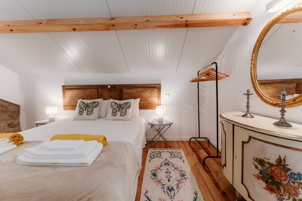 Welcome to my home! "Casa das Oliveiras" has this name because it is in front of a new olive grove planted three years ago, in place of an old vineyard, of which there are still vines that border the farm's paths and divide the different rows of land. The chalet has two bedrooms, a living room, a kitchen, and one private bathroom. The first bedroom contains a queen-sized bed, and the other is a comfy twin bedroom. The beds come with complimentary hotel-quality linens. The kitchen has modern conveniences, so feel free to cook a light homemade meal. Aside from the houses, you can enjoy plenty of shared spaces, such as the pool, lawn, shed, etc. Food is not allowed in these shared spaces. However, please feel free to have your meals inside the chalet, on the respective decks, or in the area next to the grill when available. The large, shared outdoor pool can be used between April and September, from 09:00 to 21:00, when it's nice and warm. Unfortunately, the pool is not open between October to March. It is recommended coming here with your car as we do provide one free parking per chalet. Please note that, occasionally, it may be necessary to use the washing machine located in the antechamber of the external WC near the pool. Security circuits with cameras (CCTV) and alarms are in the exterior areas. The home is always professionally cleaned for your comfort. Enjoy your stay!