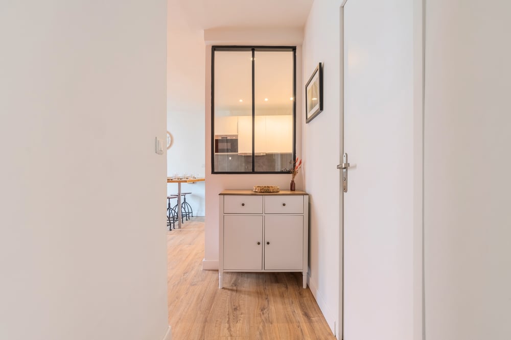 The apartment is arranged as follows: - Living room with sofa and tv - Fully equipped kitchen opening onto the living room - One bedroom with double bed - Second bedroom with double bed - Bathroom with large shower, wc and washing machine Professional cleaning service + laundry service for household linen. All linen is provided: bed linen, bath towels, bath mats and tea towels. The kitchen is equipped with all utensils and dishes for lunch and dinner. Entertainment available via TV: Molotov TV, Prime Video!
