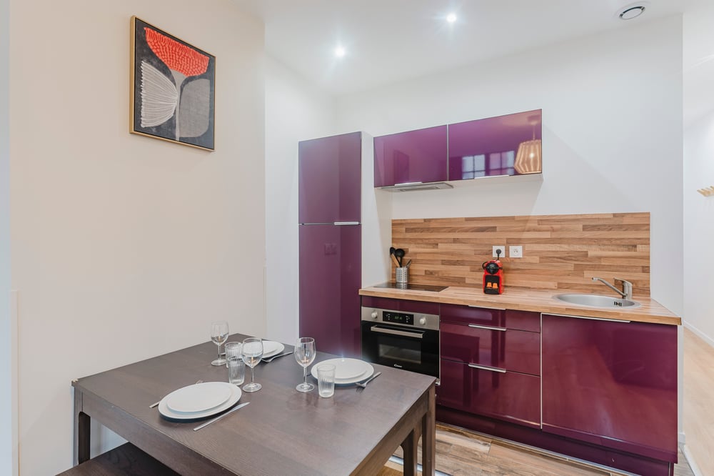 The apartment is located on the second floor of a secure residence, with access to the entire dwelling. It comprises a fully-equipped living room with lounge, dining room and fully-equipped kitchen. To the rear, in a quiet area, you'll find a bedroom with a comfortable double bed and its own storage space, as well as a shower room and WC. The accommodation will be carefully prepared for your arrival: Professional cleaning service + laundry service for household linen. All linen is provided: bed linen, bath towels, bath mats and tea towels. The kitchen is equipped with all utensils and dishes for breakfast and dinner. Entertainment available via TV: Molotov TV, Prime Video! You'll love this apartment for its facilities and its proximity to shops, restaurants and transport in Lille!