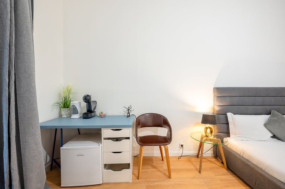 Welcome! This delightful 25m² room, on the 2nd floor and accessible by stairs, offers a cosy and welcoming atmosphere, enhanced by charming vintage details. Ideally located near popular attractions, shops, supermarkets, and a variety of restaurants, it’s perfect for guests looking to experience the best of the city. Please note that access to the building involves climbing stairs on one of Lisbon’s traditional stepped streets, and there is no lift in the building. This may not be suitable for guests with mobility issues or heavy luggage. The living area features a comfortable double bed with complimentary hotel-quality linens for maximum comfort. A desk provides a convenient workspace, whether you're catching up on emails or planning your day. Step out onto the private patio, a peaceful spot to enjoy the fresh air and a moment of relaxation. The ensuite bathroom has all the amenities you need to freshen up, including clean towels and complimentary toiletries. For your comfort, the space is professionally cleaned before your arrival. Important note: The building has old architecture, and the acoustics performance is not the best. Enjoy your stay!