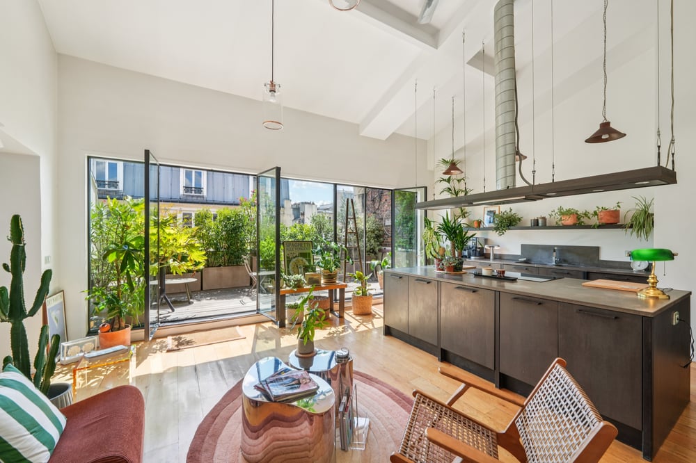 Paradisio Penthouse – Living at the top, between sky and light There are places that aren’t just visited — they’re lived. The Paradisio Penthouse is one of them. Perched on the top floor of a discreet building , this serene haven in the Parisian sky welcomes you with grace and natural light. From the moment you enter, the magic unfolds: tranquility, space, elegance. A rare breath of air in the very heart of Paris. The apartment is built around a spacious living room bathed in sunlight, where open volumes and refined finishes create an immediate sense of flow and well-being. Two serene, luminous bedrooms invite you to rest. Nearby, a cozy reading nook offers a suspended moment with a book and a warm drink. A game room awaits for shared laughter, family afternoons, or relaxed evenings with friends. The kitchen is a true invitation: welcoming, stylish, and fully equipped to awaken your inner chef. Whether it's for a dinner with friends or a spontaneous brunch, every moment becomes a ritual of pleasure. But what truly makes Paradisio’s heart beat is its terrace. Expansive, sun-filled, and open to the sky. A true extension of the living room, it becomes a stage for life itself: sunrise breakfasts, shady afternoon naps, golden hour aperitifs, late-night whispers under the stars… It’s a rare luxury in Paris — a suspended sanctuary where time slows down and memories are made.