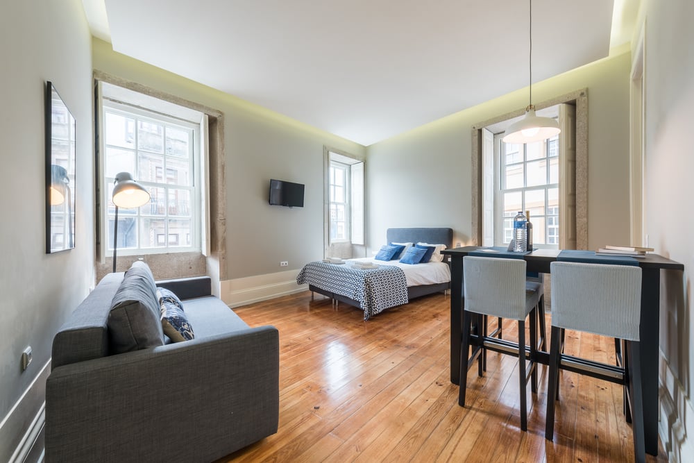 Welcome to our home! With great sun exposure, this is an open space with fully functional kitchen and a bathroom. The living room has a TV with international channels, there is also a comfortable sofa that turns into a full size sofa bed. This is a renewed apartment with a 5-minute walking distance to São Bento metro station. The kitchen is equipped with everything necessary from coffee machine, water kettle, microwave, toaster, oven and stove top, all utensils necessary for a home cooked meal can be found like pots and pans, cutlery and crockery. The dining area can comfortably accommodate 4 people. The apartment also comes with a washer and ironing equipment should you need it. It's fantastic location allows a quick access on foot to the main tourist spots in Porto, like the R. das Flores, Torre dos Clérigos or even the river area. You can store your bags free of charge at the Welcome Center. Please note: the apartment does not come with cooking oil, salt and pepper.
