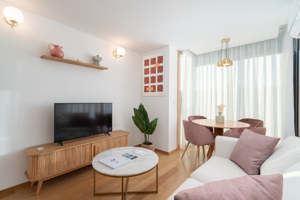 The apartment overlooks the main street and offers spacious rooms, high-quality finishes, and carefully selected furniture and décor designed to provide exceptional comfort. Whether you are staying overnight, for a weekend or for a season, the apartment can accommodate from one to four people. In the bedroom, guests can choose between a double bed or two single beds. For added convenience, in addition to a dedicated parking space, the apartment is equipped with some small appliances, utensils and essential products so that guests can have all the essential amenities during their stay. The surrounding area is safe and quiet, and the apartment is within walking distance of convenient places (restaurants, cafes, markets, shopping centers, etc.) and other points of interest.