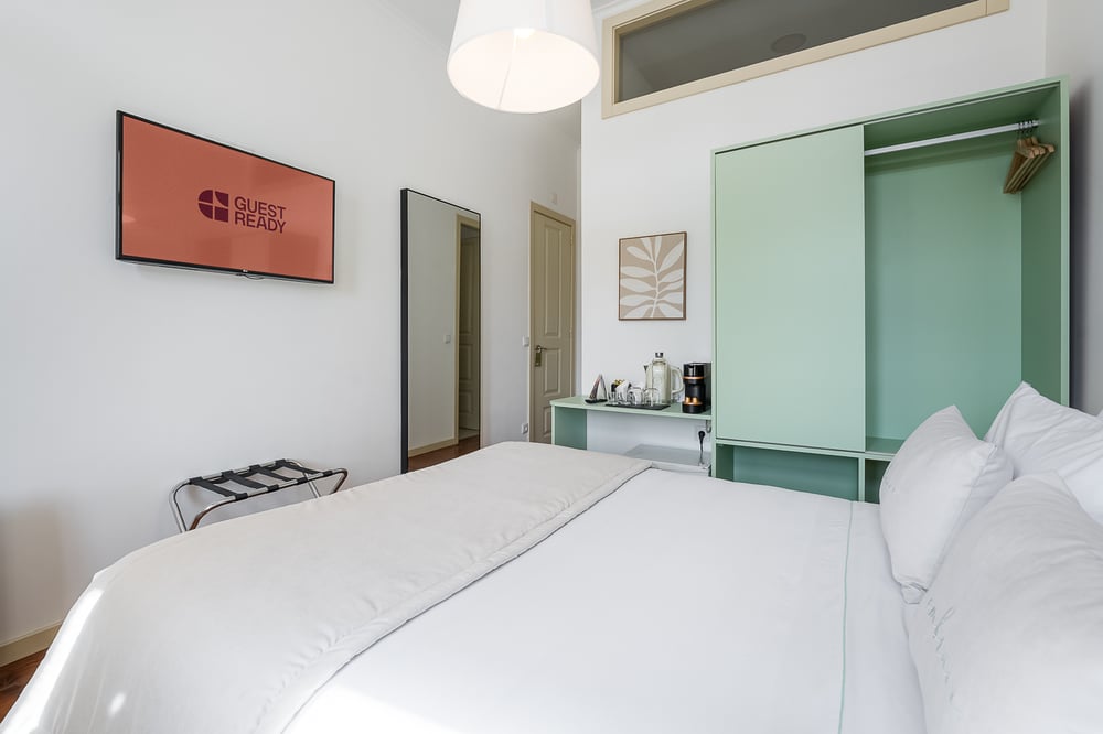 Welcome! This lovely 15m² private room is ideally situated near popular attractions, shops, supermarkets, and a wide selection of restaurants offering diverse culinary experiences. It is located on the 1st floor, and the building has no elevator. The room is furnished with a comfortable king-sized bed, a flat-screen TV for your entertainment, a support desk and free Wi-Fi for a relaxing stay. This room opens onto a beautiful balcony. The bathroom is thoughtfully stocked with fresh towels and complimentary toiletries for your convenience. Guests can access a shared living room on the ground floor and a lovely outdoor terrace - the perfect spot for a morning coffee or a cup of tea. The continental breakfast is served in a basket and left outside the room. If you prefer, you can take the basket to the common areas and enjoy breakfast in the living room or on the terrace. For your comfort, the space is always professionally cleaned before your arrival. Enjoy your stay! NOTE: There are security cameras in the access areas to the rooms for safety reasons.