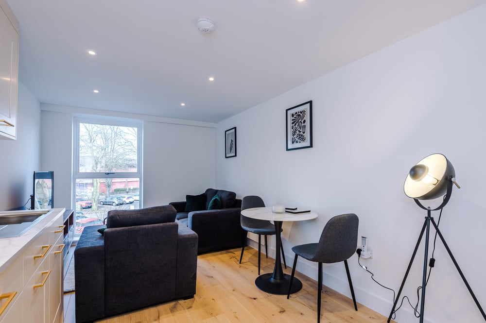 Nestled in the vibrant center of Sale, this neighborhood offers a welcoming mix of local charm and urban convenience. Just a short stroll from the flat, you’ll find cozy cafés, independent shops, and weekly markets that bring a friendly community feel to everyday life. Whether you're grabbing your coffee to go or spending the afternoon people-watching at a local bistro, everything you need is right on your doorstep. With Sale Metrolink station just five minutes away, exploring Manchester and the surrounding areas is easy and hassle-free. Leafy parks and riverside walks are also nearby, offering a peaceful escape within the city. This walkable, well-connected neighborhood is perfect for guests looking to experience a relaxed, authentic slice of Greater Manchester living.