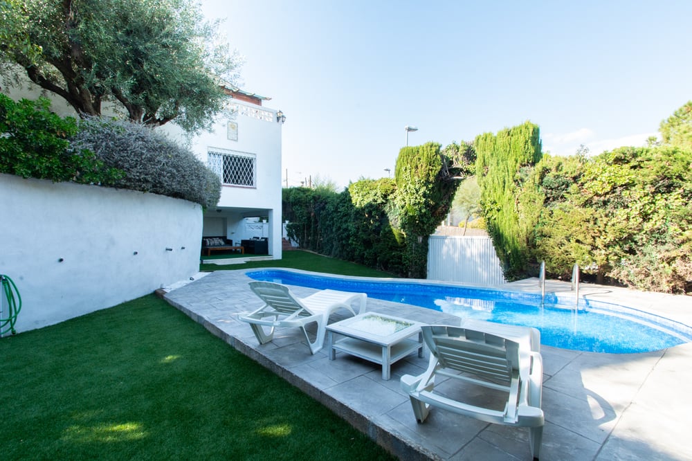 Welcome to my house! This charming 260m² five-bedroom house in Alella is the perfect retreat for families and friends looking to create lasting memories. Spread across two beautifully decorated floors, the home combines comfort, style, and functionality. The living room features two plush sofas, a TV for your favourite shows, and a cosy fireplace that sets the mood for relaxed evenings together. The adjoining dining room, furnished with a large table and comfortable chairs, provides the ideal setting for family meals and special gatherings. The fully equipped kitchen offers everything you need to prepare delicious home-cooked meals, including a stove, oven, microwave, and all essential cookware and cutlery. For added convenience, the property also includes a washer and ironing equipment to take care of your laundry needs during your stay. The house accommodates guests with ease across five thoughtfully arranged bedrooms: four with double beds and one with a single bed. Each room is fitted with complimentary hotel-quality linens, ensuring a restful night’s sleep. The two bathrooms are stocked with fresh towels and toiletries, so you have everything you need to refresh and unwind. The highlight of the property is the inviting outdoor space. It boasts a private pool for cooling off on warm summer days, a barbecue area perfect for alfresco dining, and a sun deck complete with loungers and a seating area where you can relax and soak up the Mediterranean sunshine. The house is always professionally cleaned for your comfort. Enjoy your stay!