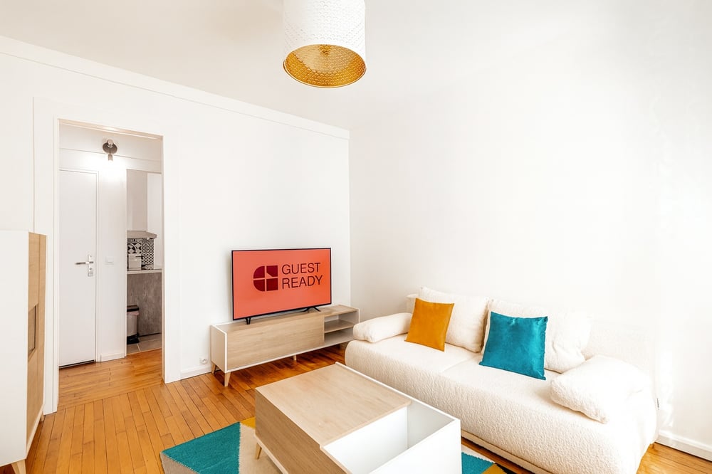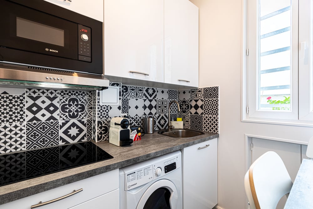 Welcome to my studio! Situated on the ground floor, this bright and tastefully decorated 23m² apartment is close to various top attractions. The living space features a convertible sofa bed with complimentary hotel-quality linens for maximum comfort and a wide-screen smart TV to watch all your favourite shows through multiple streaming options. The kitchen is fully equipped with essential cookware and cutlery that you'll need to cook delicious meals, including a stove, an oven, and a microwave. There's also a dining area where you can dine with loved ones and a washing machine for your laundry needs. The bathroom contains all the essentials for your convenience, including towels and complimentary toiletries. The studio is always professionally cleaned for your comfort. Enjoy your stay!