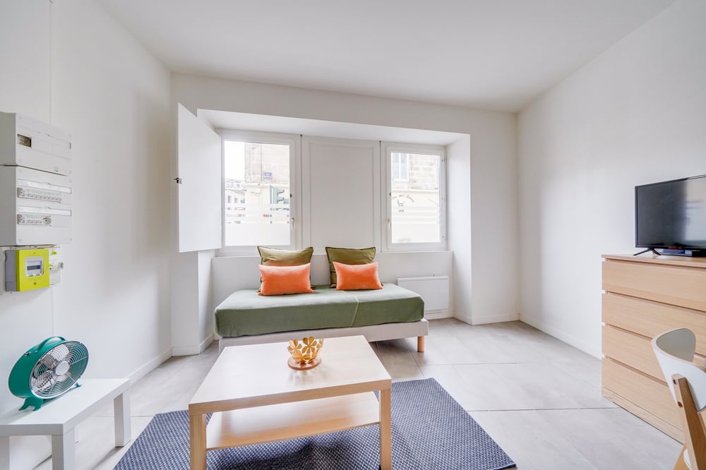 Large, bright studio apartment for a pleasant, comfortable stay. Ideally located in Bordeaux, just a stone's throw from the Marché des Capucins, it has all the transport links you need to visit the city, and is equipped with all modern amenities.